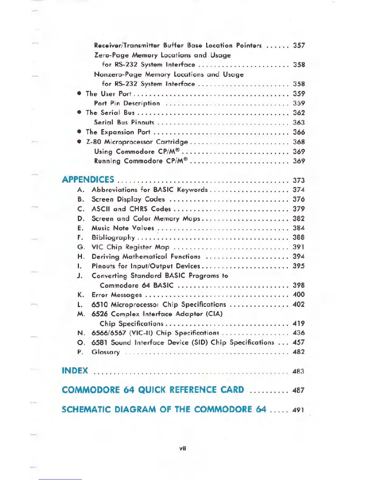 SCHEMATIC DIAGRAM OF THE COMMODORE 64 . . . .. 491