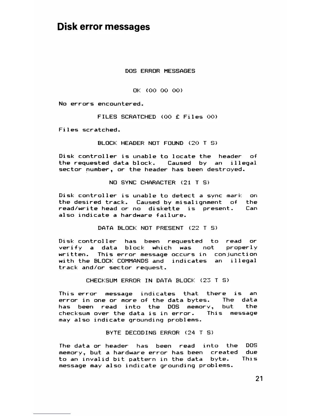 Disk error messages