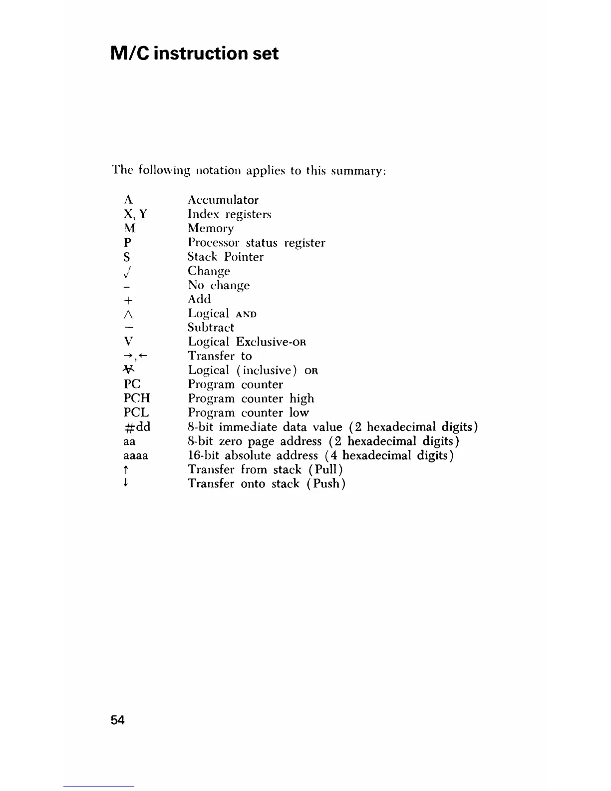 M/C instruction set