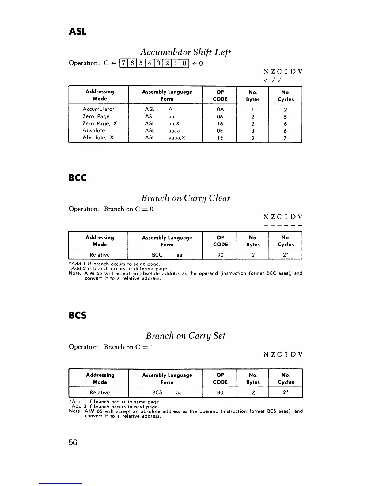 Note: AIM 65 w ill accept an absolute address as the operand (instruction format BCS aaaa), and