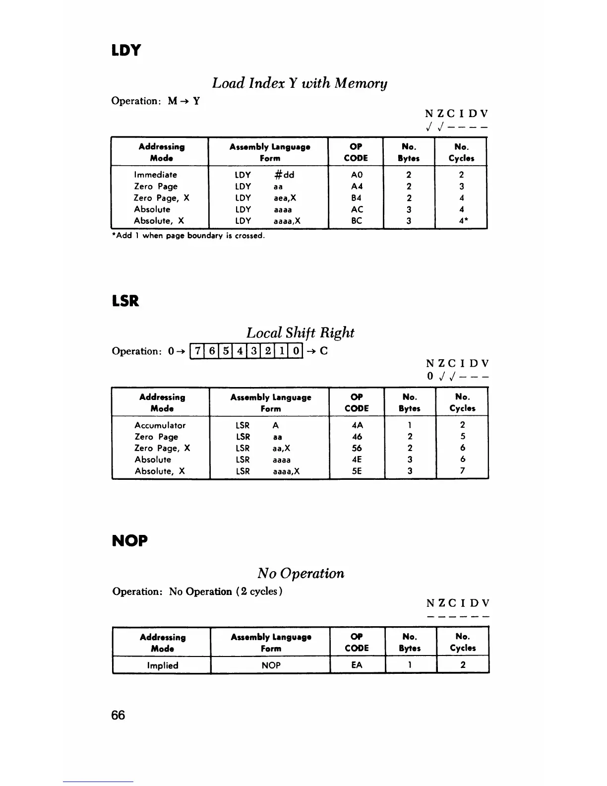 Absolute, X LDY aaaa,X BC