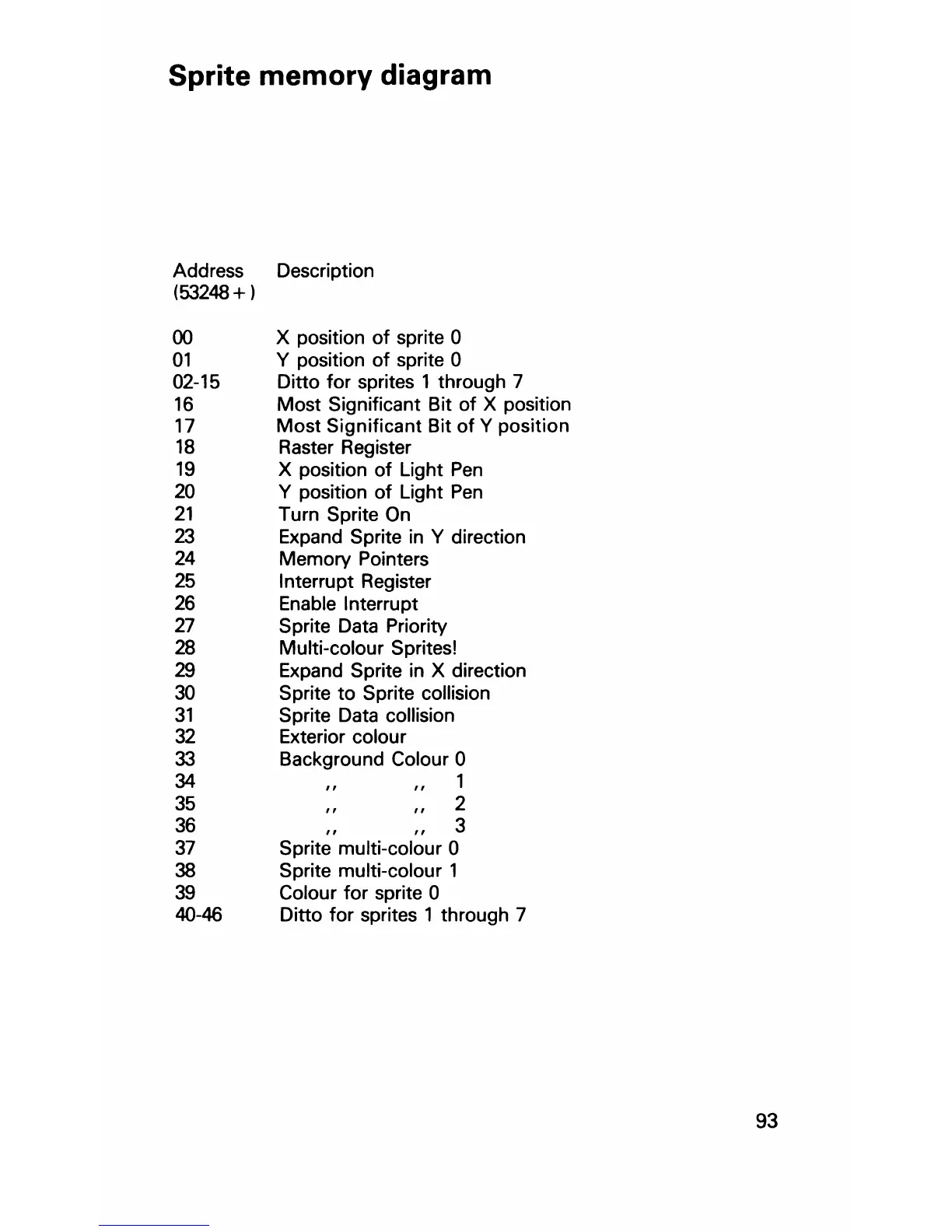 Sprite memory diagram