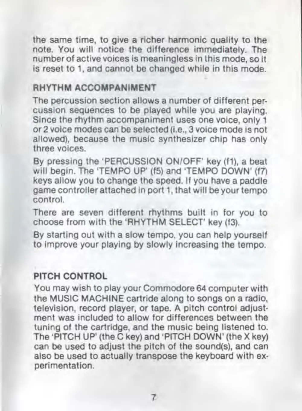 'TEMPO UP' (f5) and 'TEMPO DOWN' (f7)
