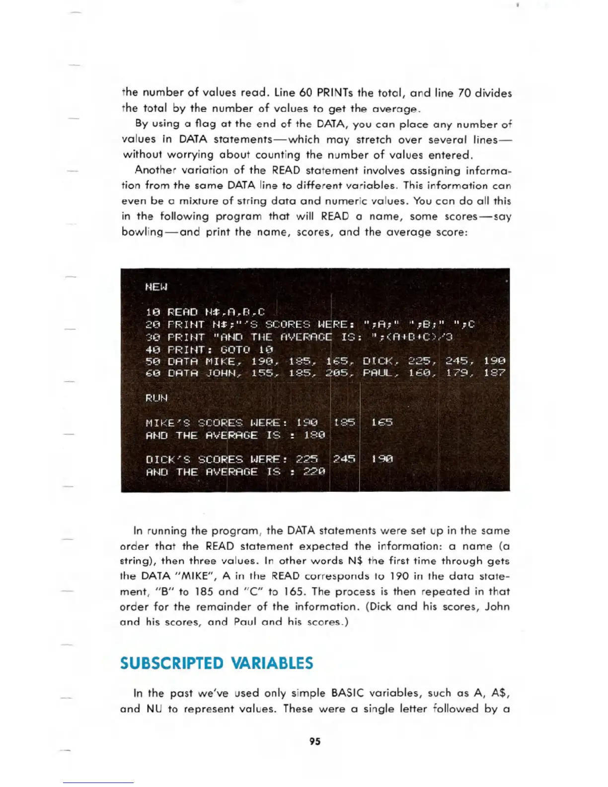 the number of values read. Line 60 PRINTsthe total, and line 70 divides