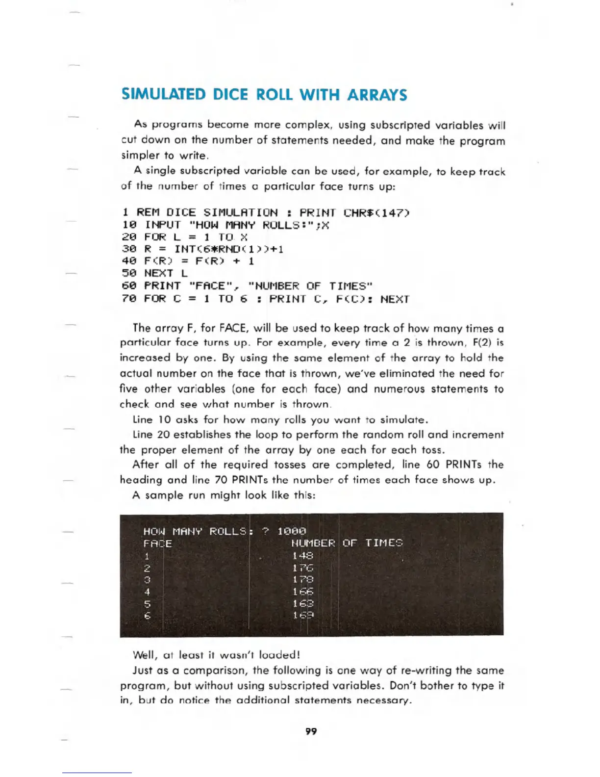 1 REM DICE SIMULATION : PRINT CHR$(147)