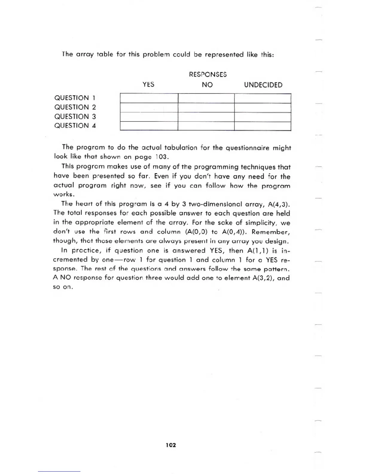 The heart of this program is a 4 by 3 two-dimensional array, A(4,3).
