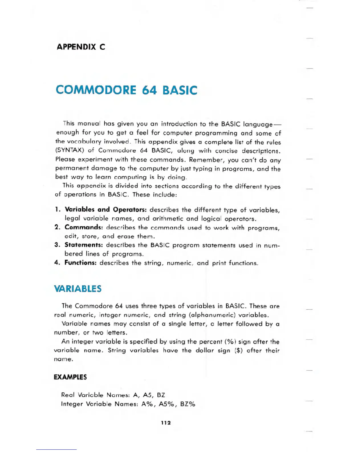 The Commodore 64 uses three types of variables in BASIC. These are
