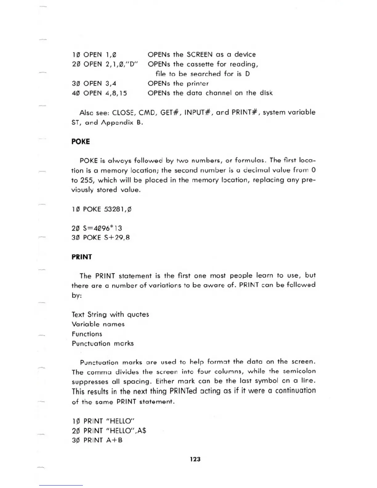 Also see: CLOSE, CMD, GET#, INPUT#, and PRINT#, system variable