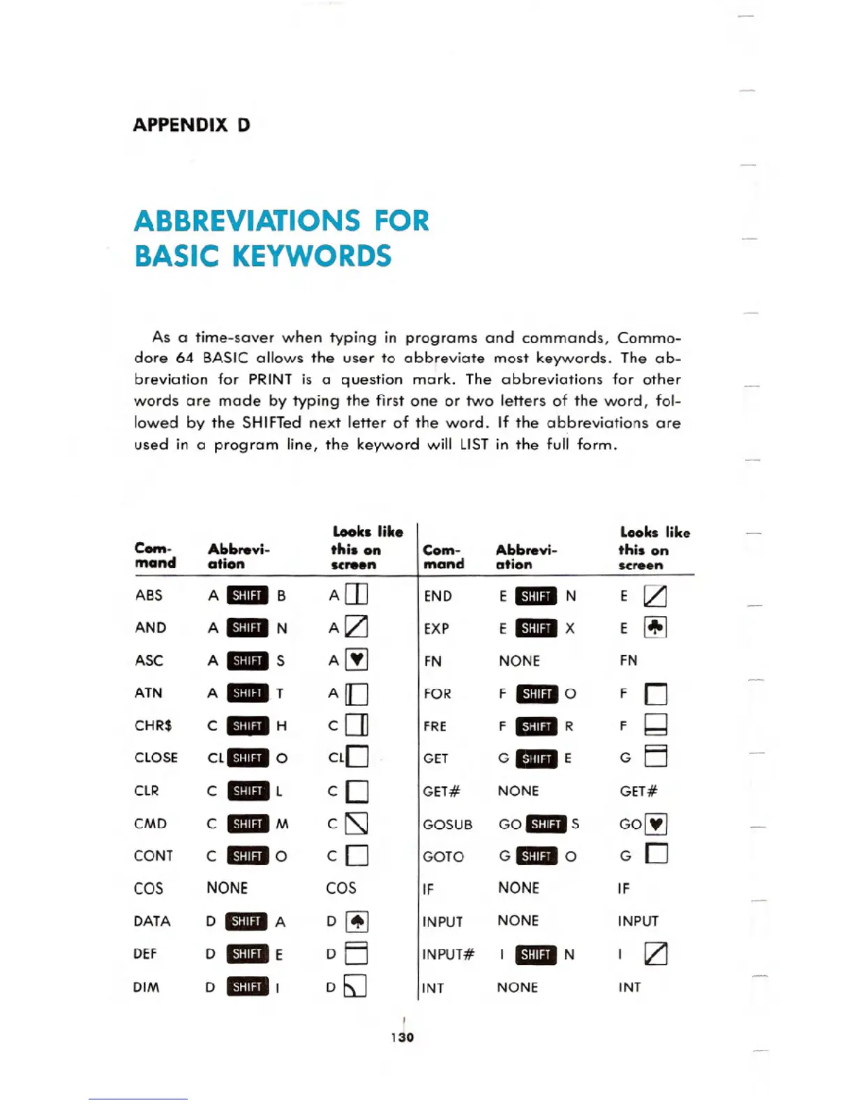 dore 64 BASIC allows the user to abbreviate most keywords. The ab-