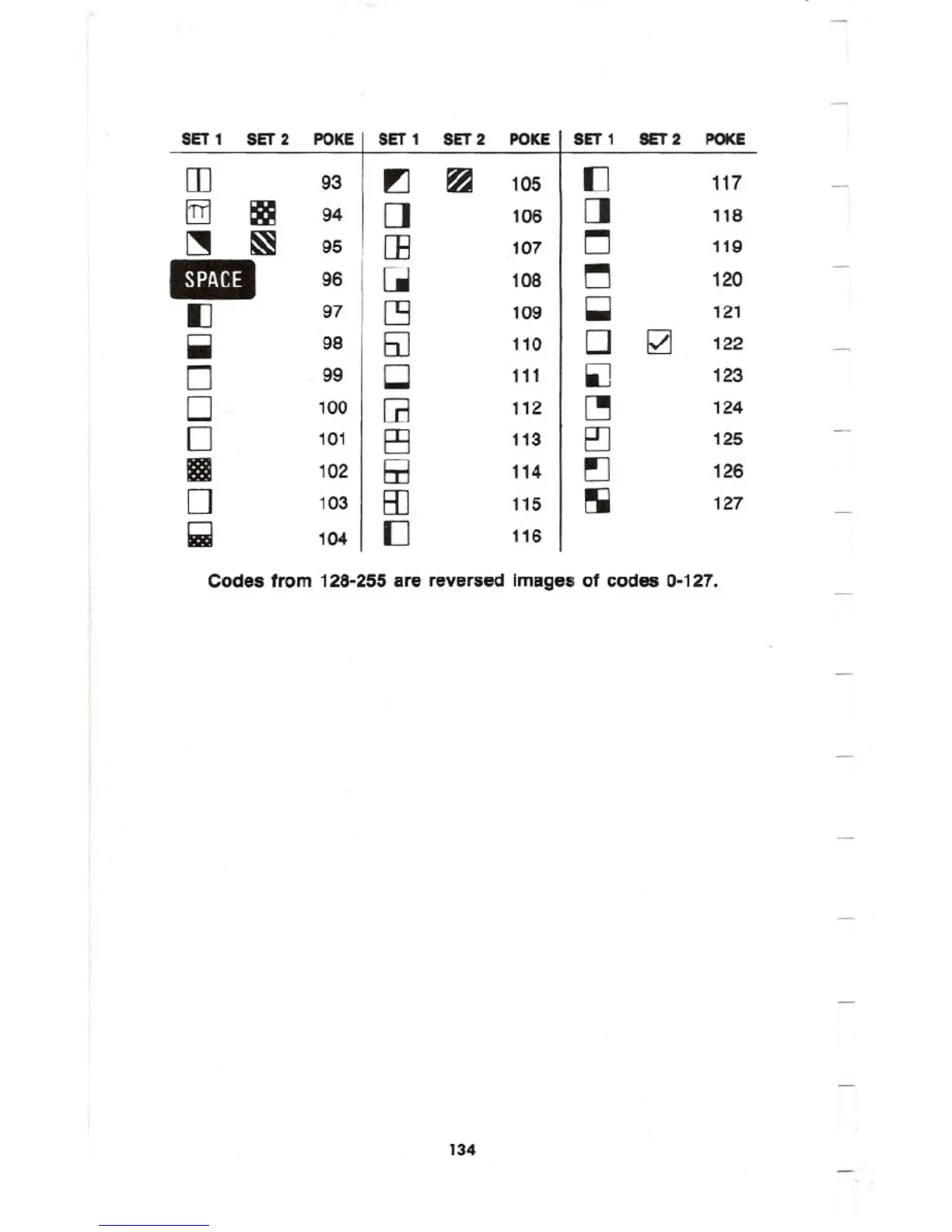 Codes from 128-255are reversed Images of codes 0-127.