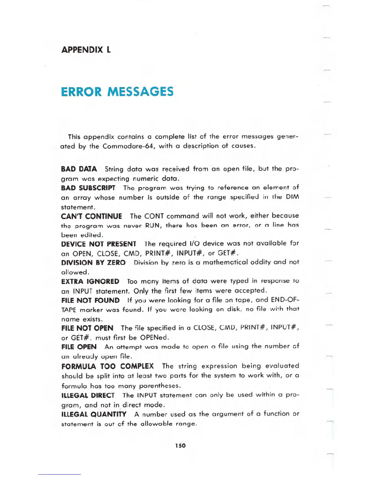 FILENOT OPEN The file specified in a CLOSE, CMD, PRINT#, INPUT#,