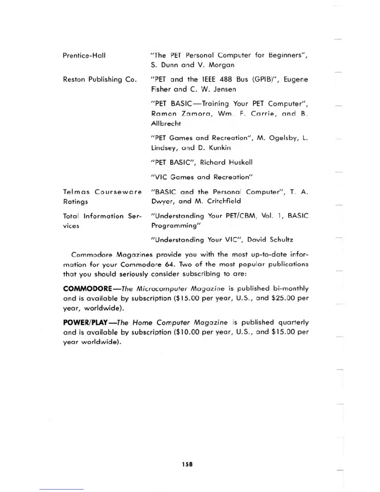 mation for your Commodore 64. Two of the most popular publications