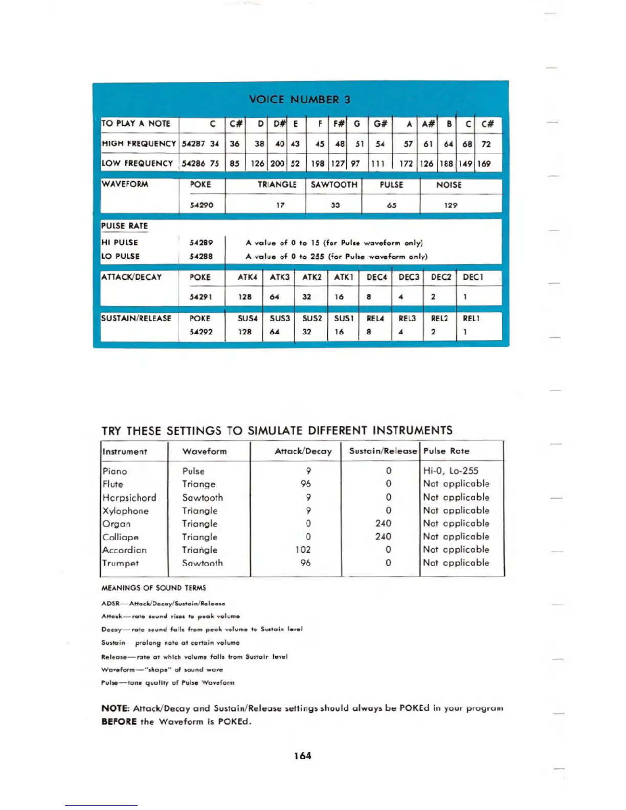 NOTE: Attack/Decay and Sustain/Release settings should always be POKEd in your program