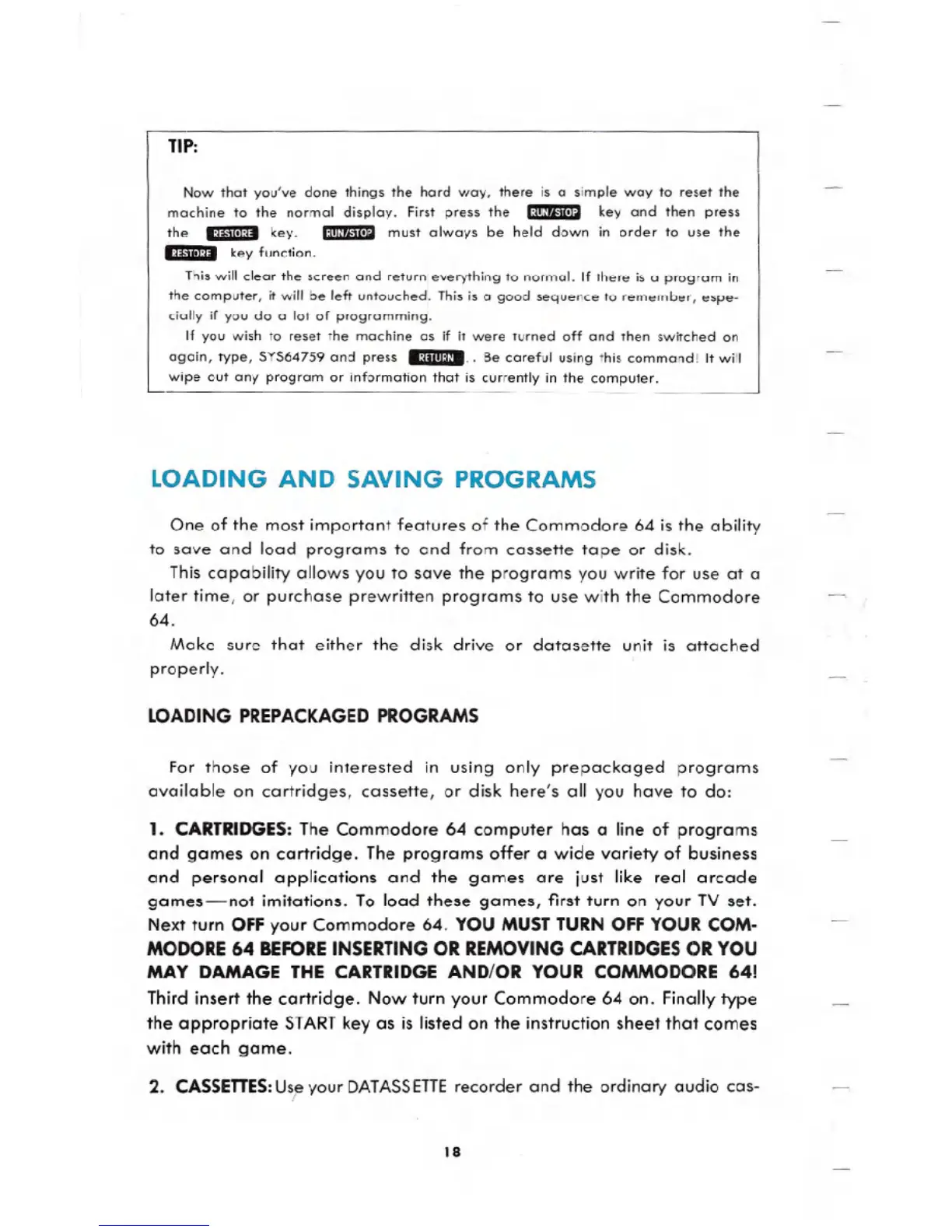 MODORE 64 BEFOREINSERTING OR REMOVING CARTRIDGESOR YOU