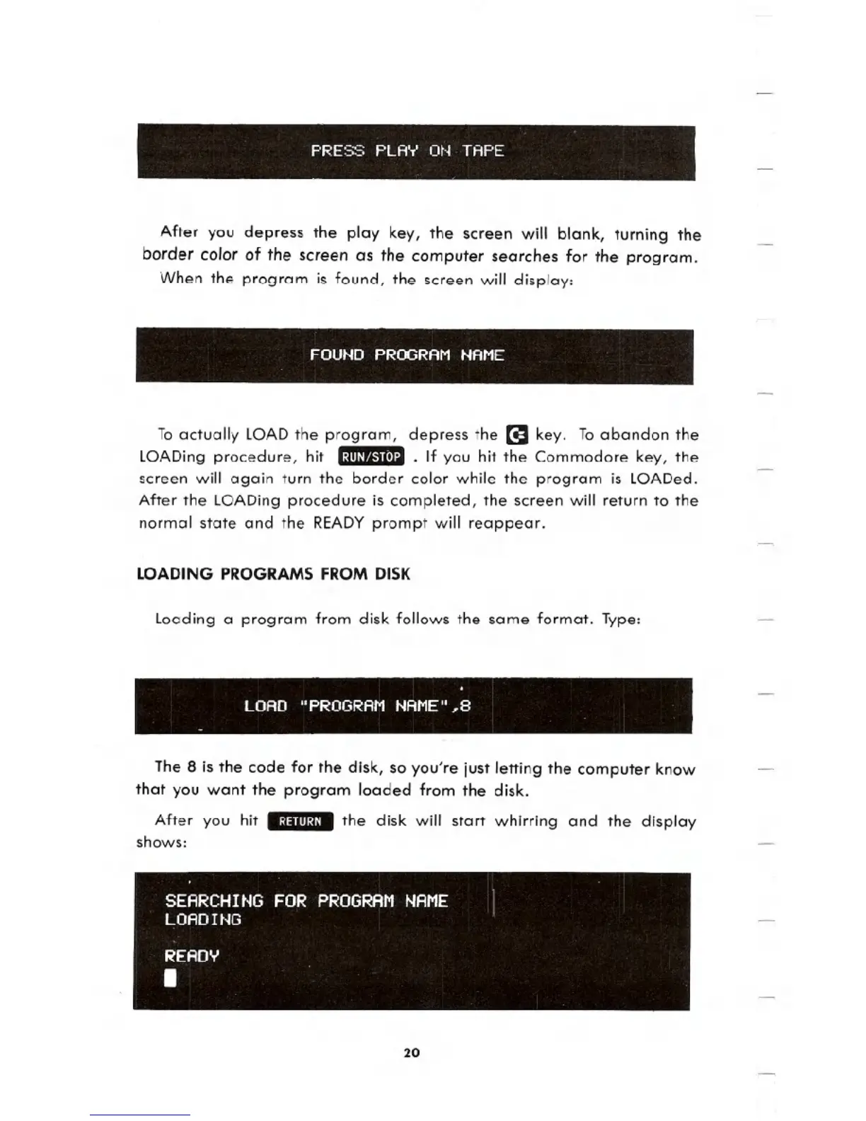 LOADing procedure, hit .:ml'~"tI8I:.J1.If you hit the Commodore key, the