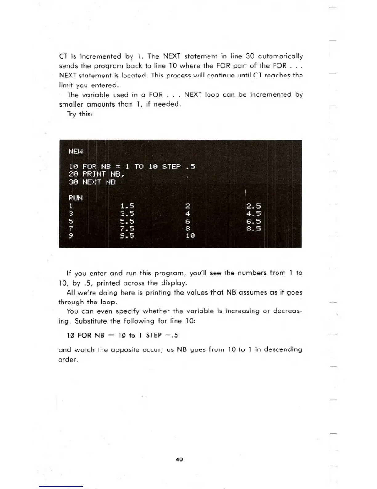 sends the program back to line 10 where the FOR part of the FOR. . .