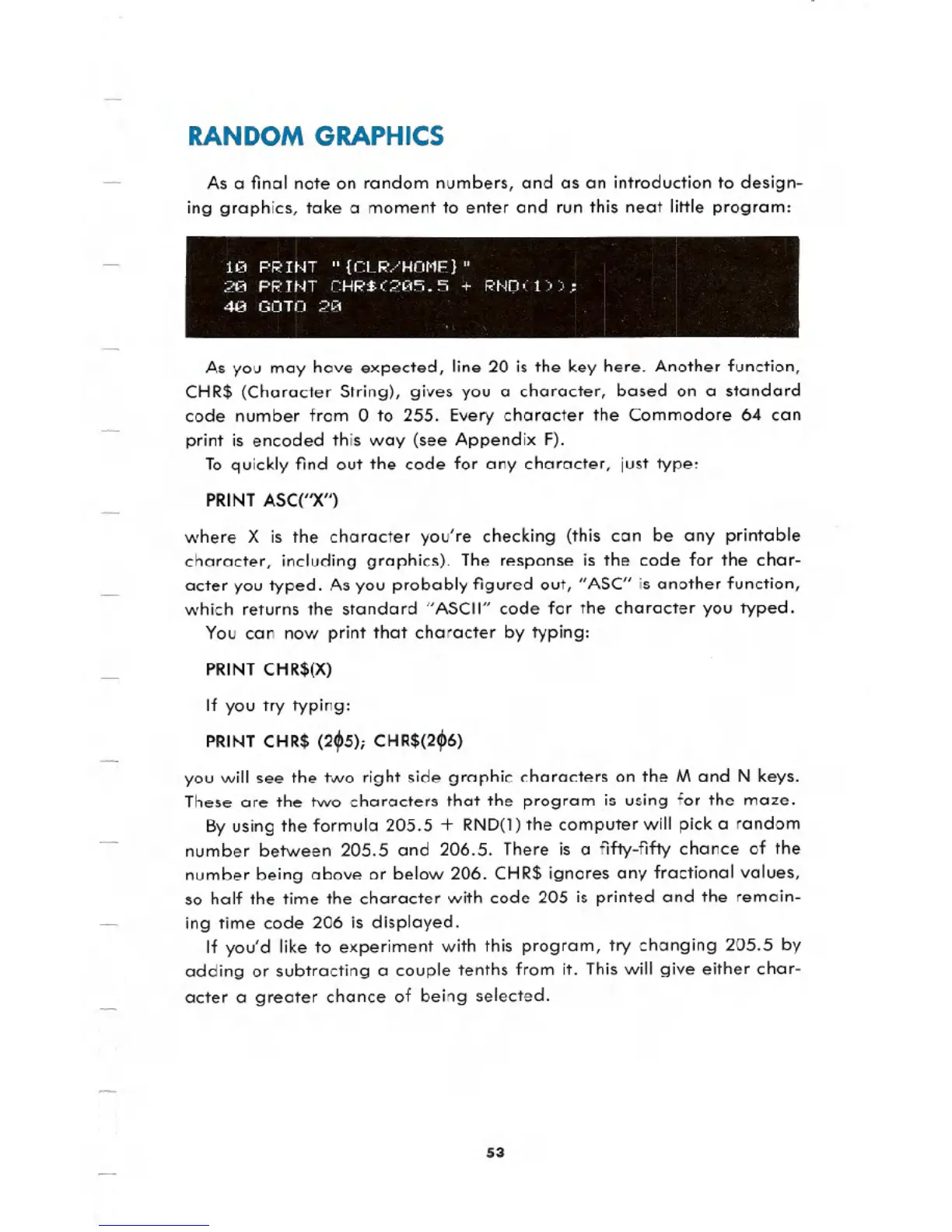 20 PRINT CHR$(205.5 + RNO(l»;