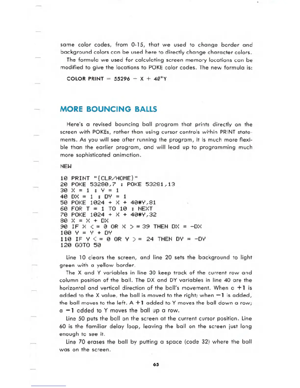 screen with POKEs, rather than using cursor controls within PRINT state-