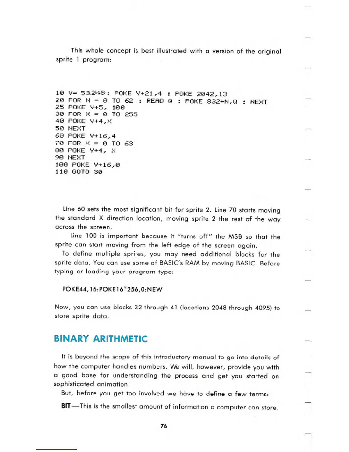 Line 60 sets the most significant bit for sprite 2. Line 70 starts moving