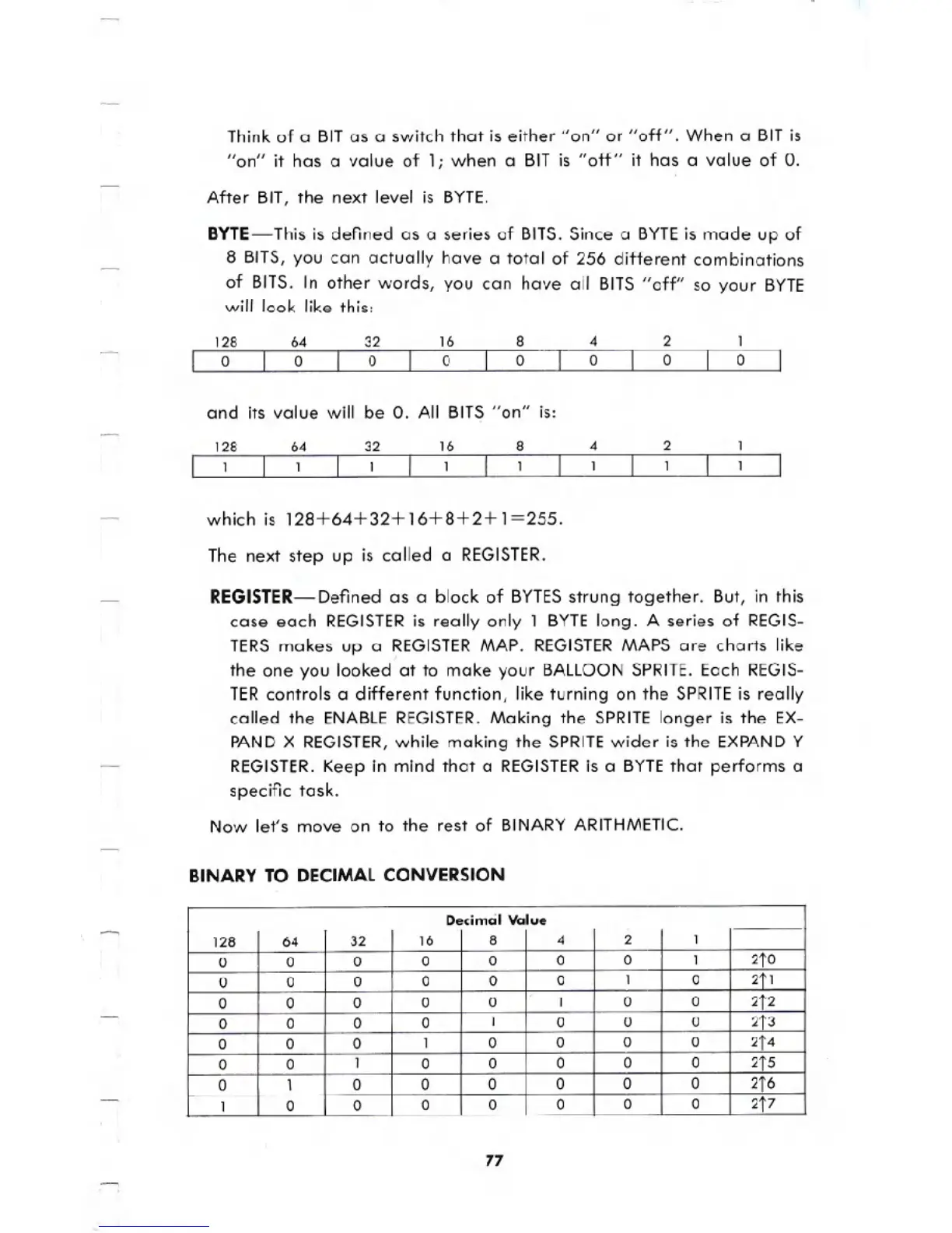 "on" it has a value of 1; when a BIT is "off" it has a value of O.