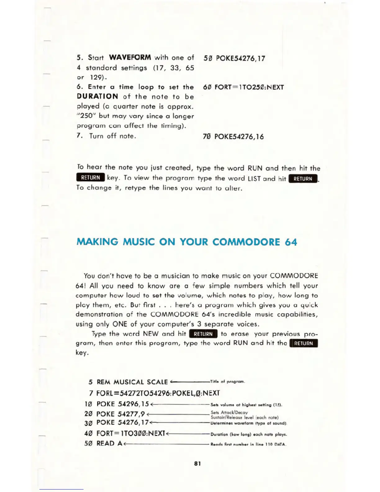 5. S.tart WAVEFORMwith one of 50 POKE54276,17