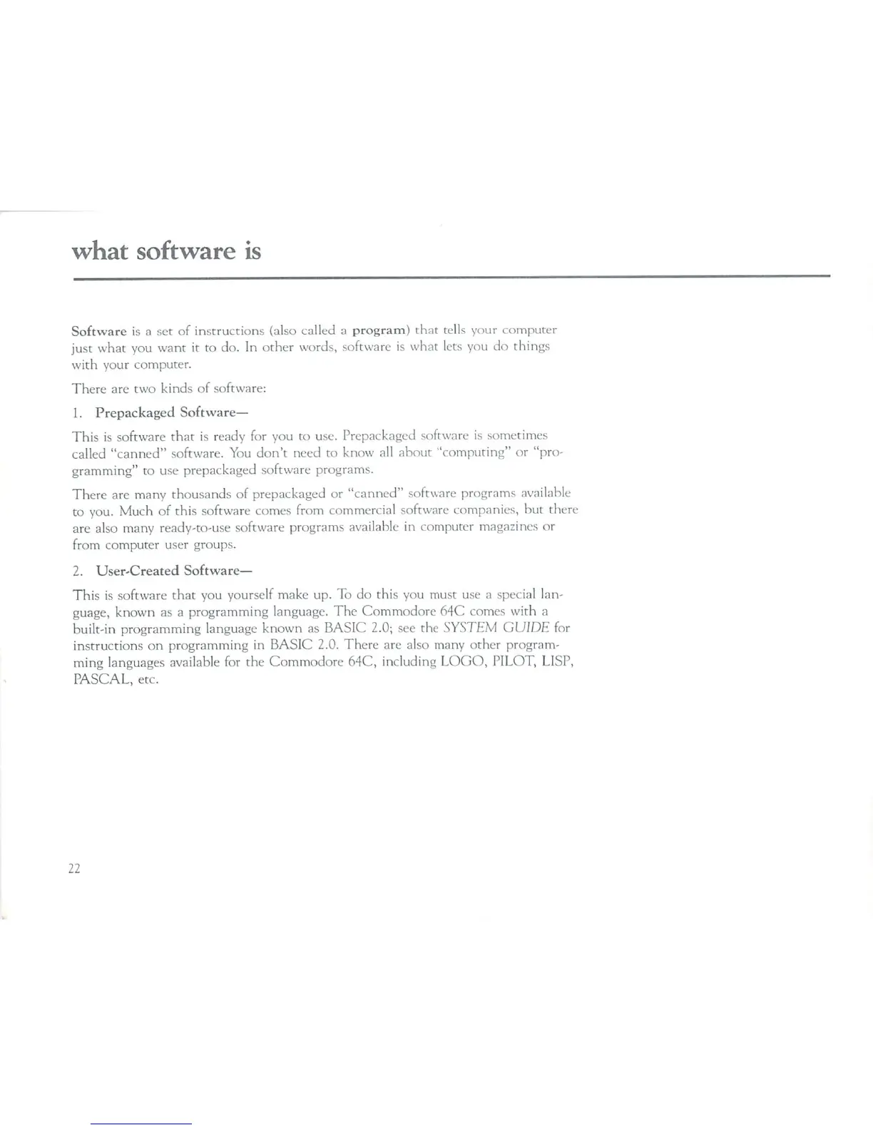 Commodore 64C - Understanding Software Concepts