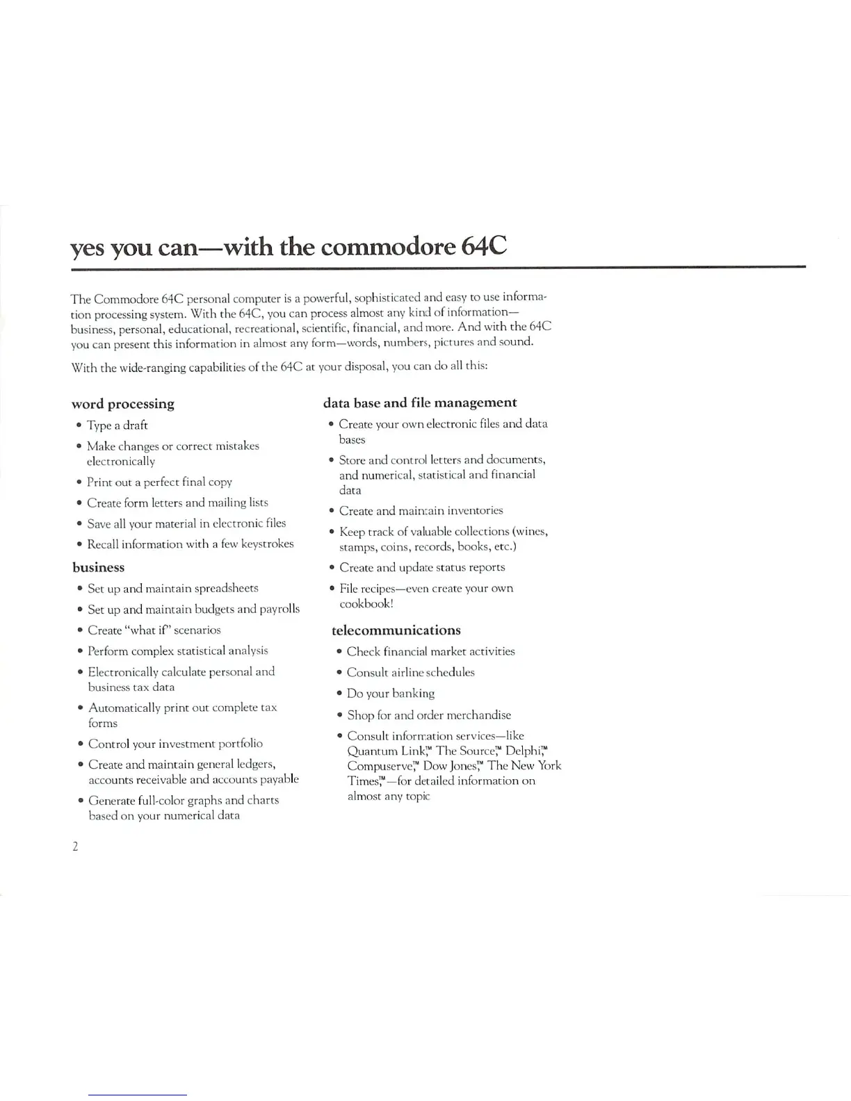Commodore 64C - Commodore 64 C Capabilities Overview