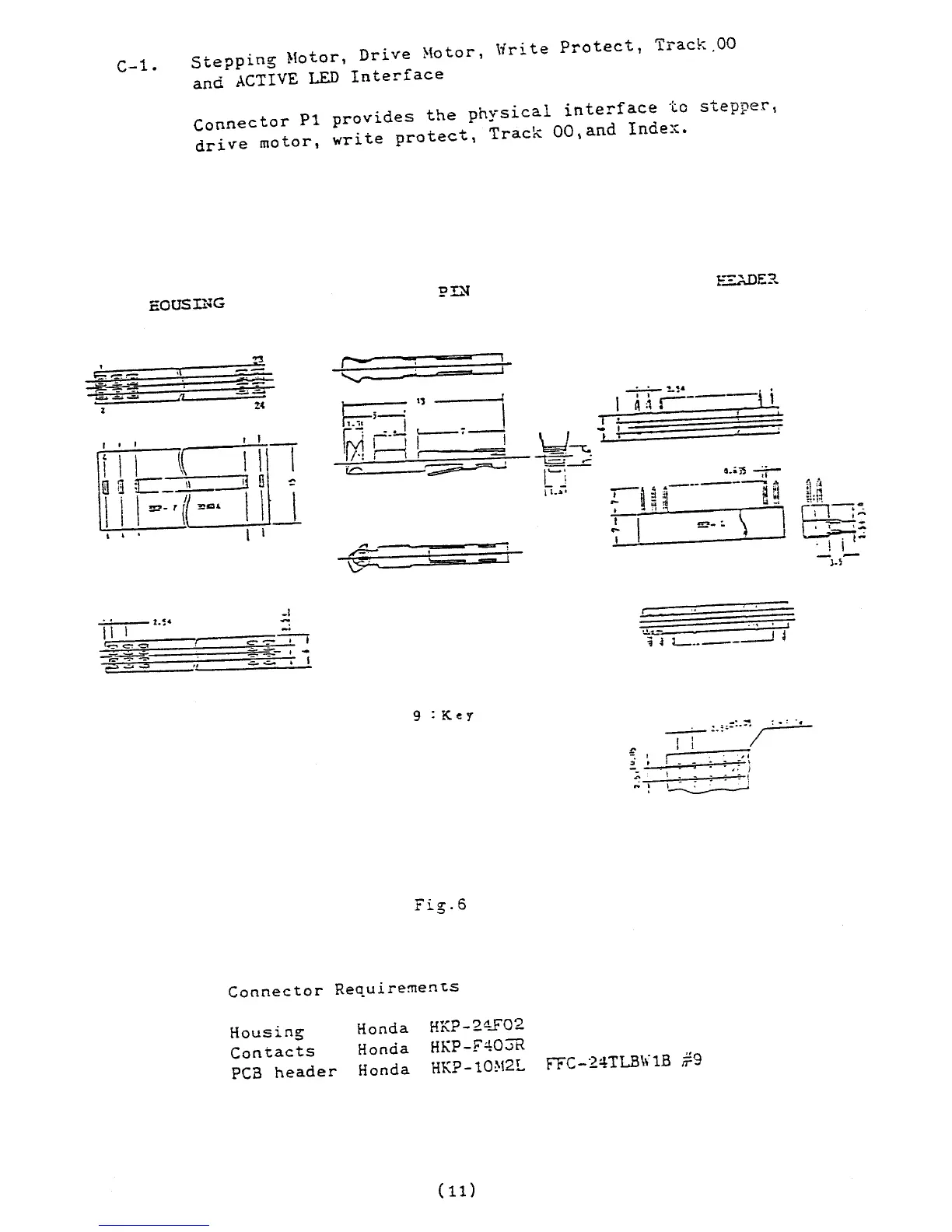 Commodore 8250LP - VIII. INTERFACE; Connector P1 Interface (Motor, Protect, LED); Connector P1 Requirements