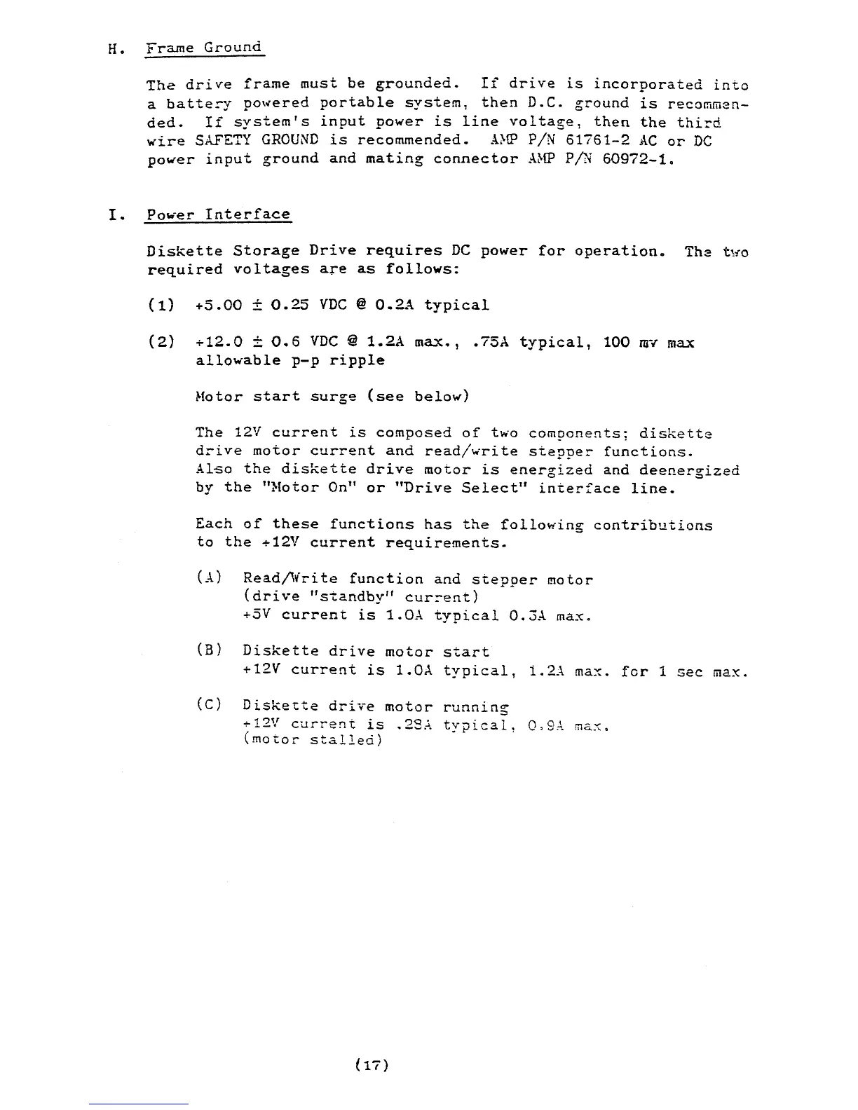 Commodore 8250LP - VIII. INTERFACE; Frame Grounding; Power Interface Requirements