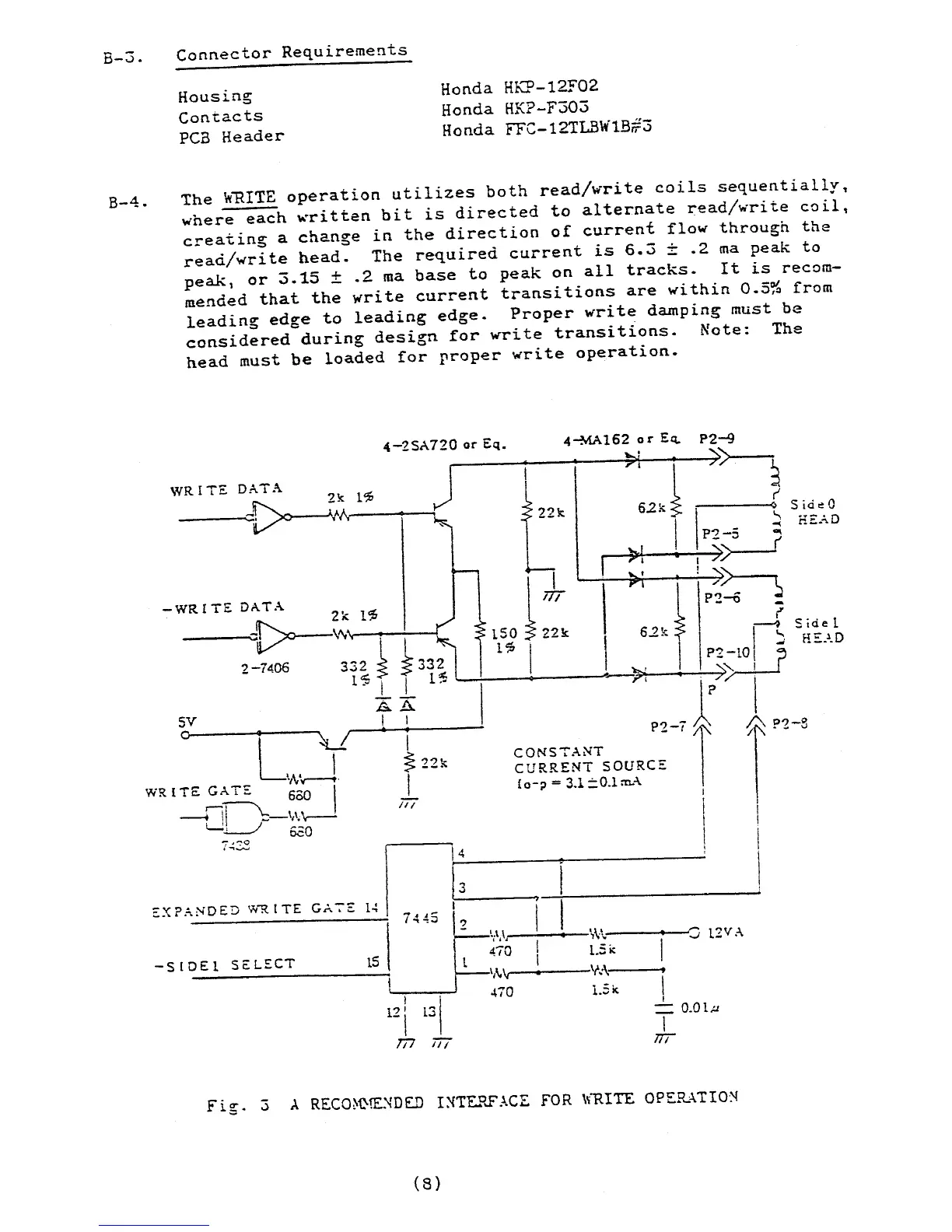 Commodore 8250LP - VIII. INTERFACE; Connector Requirements (P1 & P2); Recommended Write Operation Interface