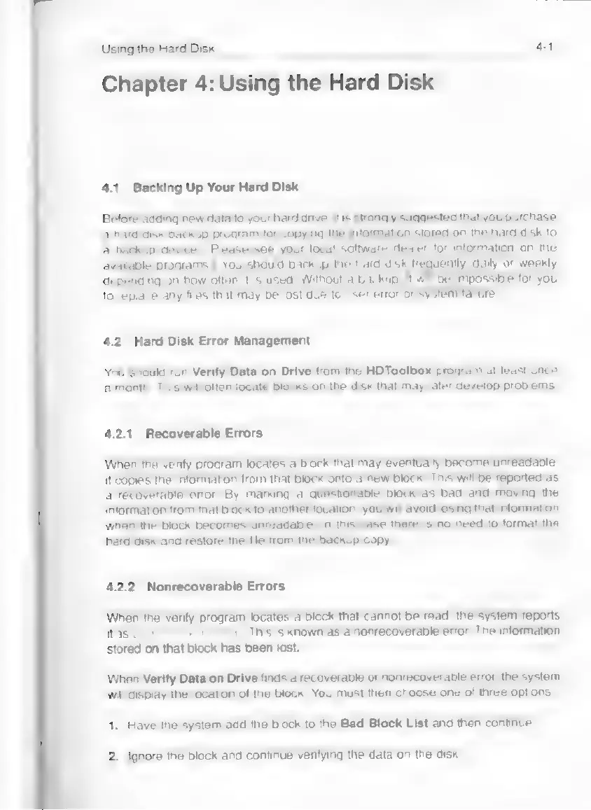 Commodore A 2091-40 - Using the Hard Disk; Backing up Your Hard Disk; Hard Disk Error Management; Recoverable Errors