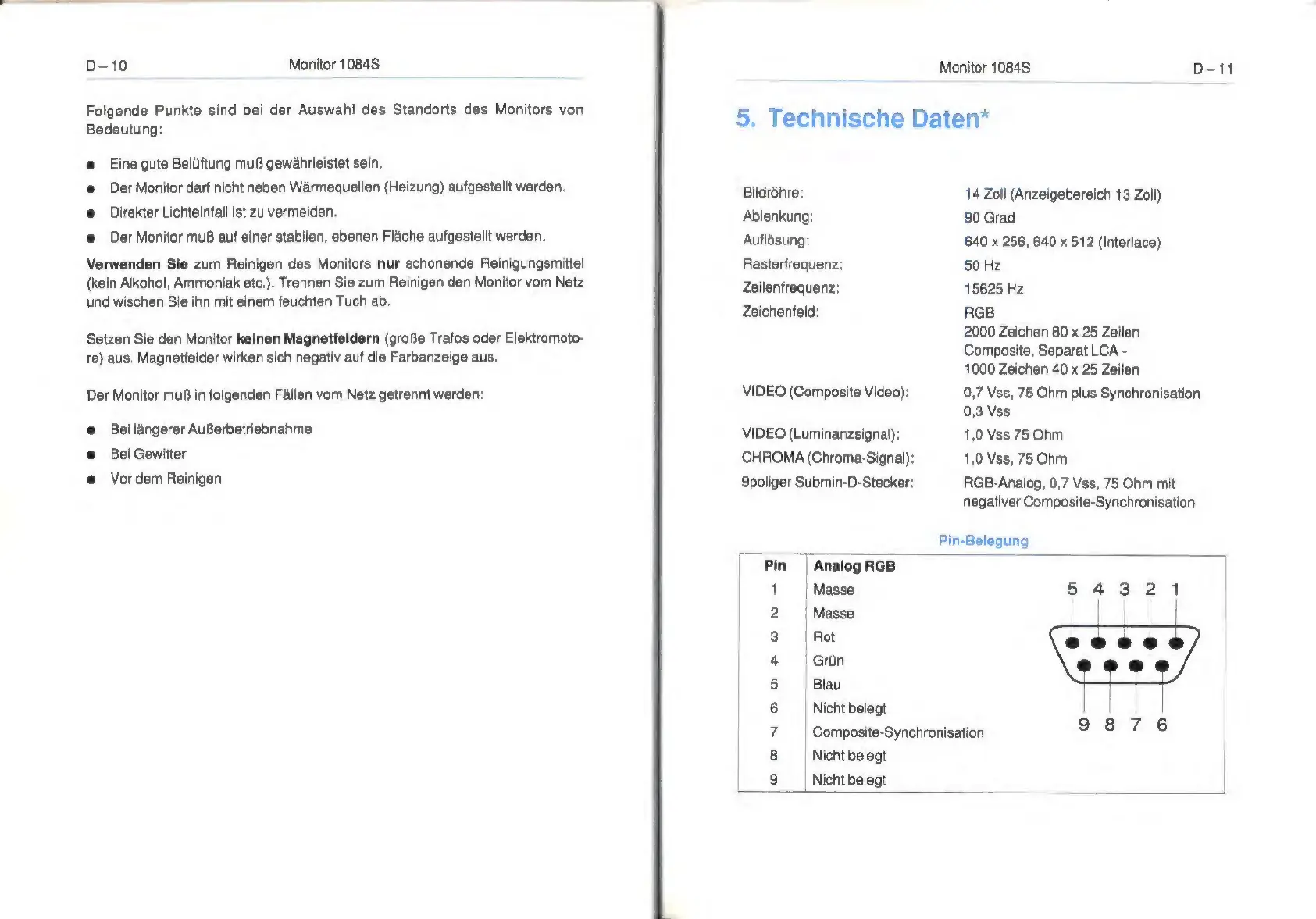 Commodore AMIGA 1084S - Technische Daten