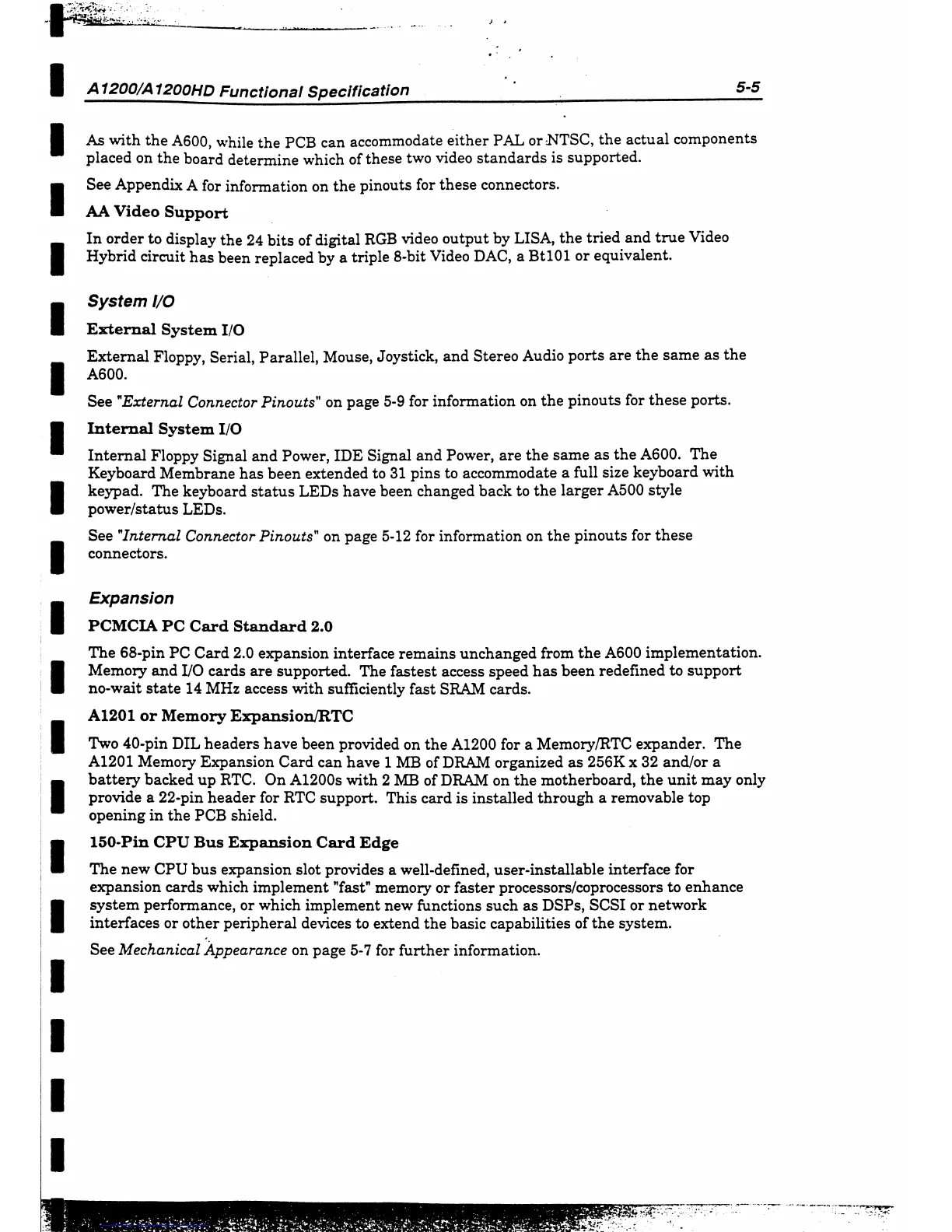 Commodore Amiga 1200 - AA Video Support; System I;O; Expansion