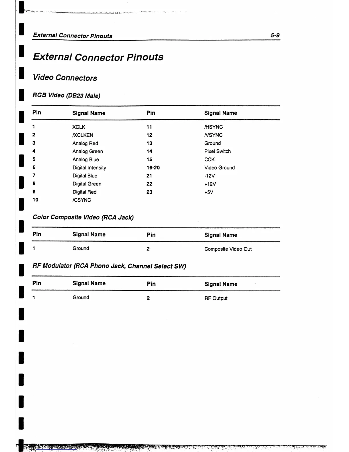 Commodore Amiga 1200 - External Connector Pinouts; Video Connectors; RGB Video (DB23 Male); Color Composite Video;Rf Modulator