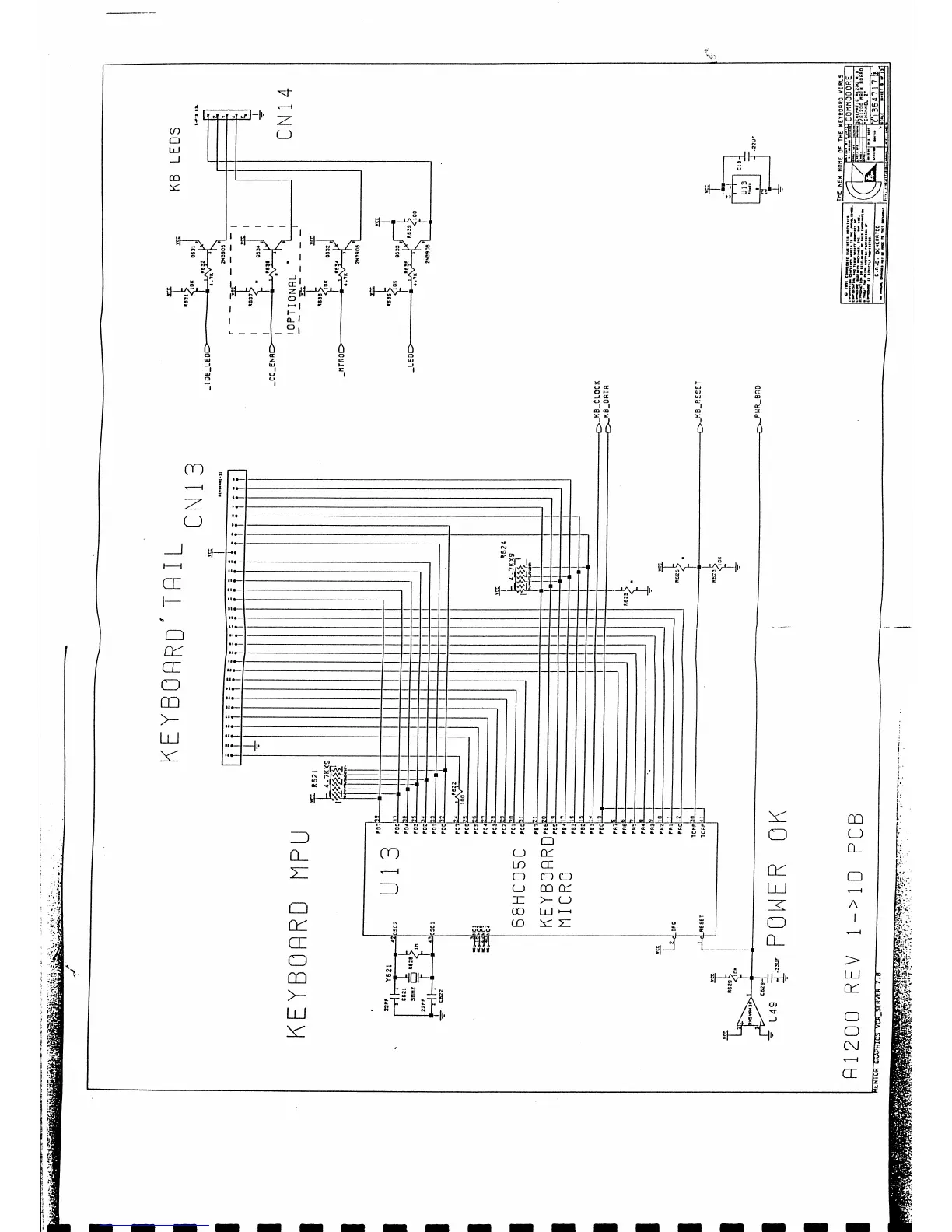 Commodore Amiga 1200 - Keyboard MPU, Keyboard Tail Schematic Diagram