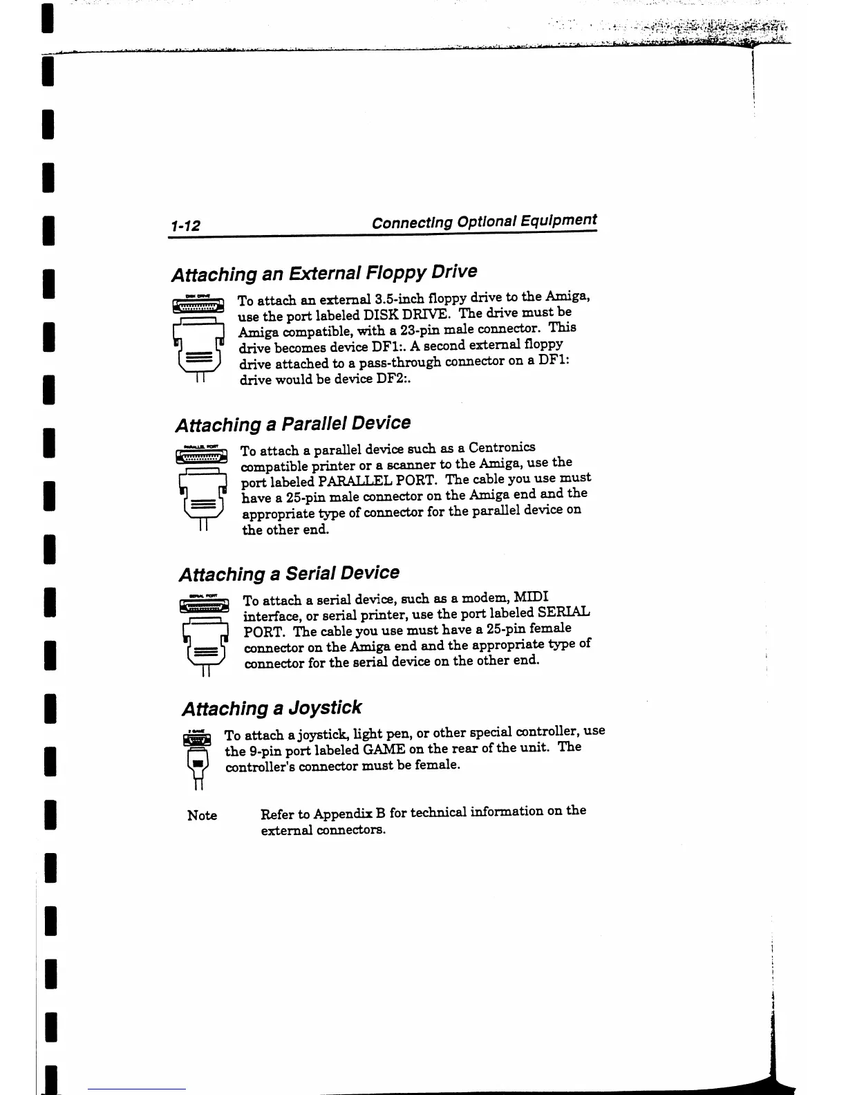 Commodore Amiga 1200 - Attaching an External Floppy Drive; Attaching a Parallel Device; Attaching a Serial Device; Attaching a Joystick