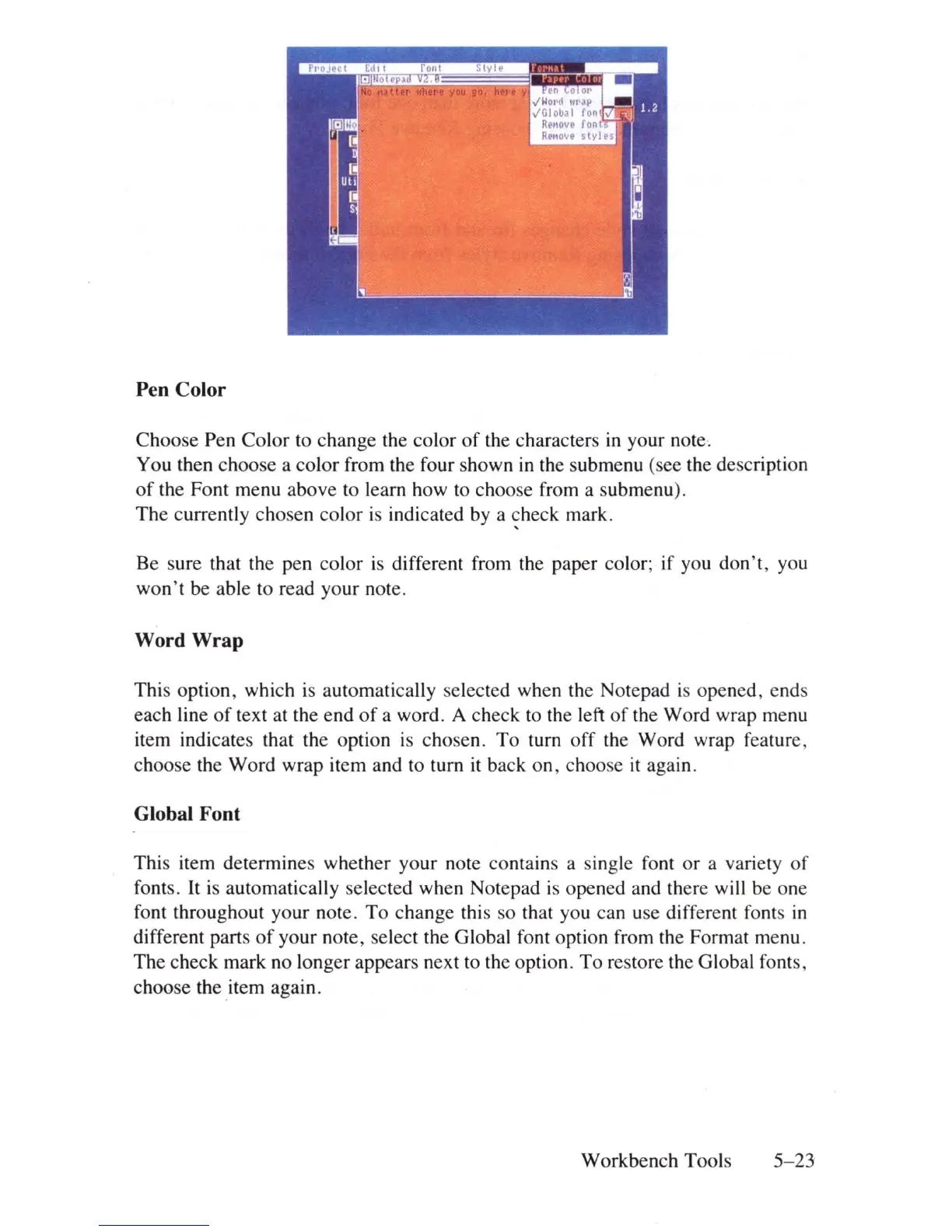 your note, select the Global font option from the Format menu.