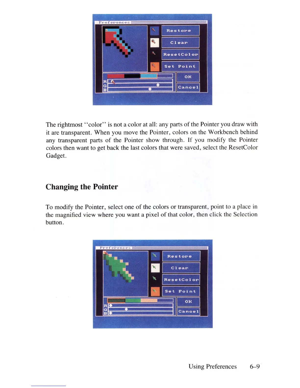 are transparent. When you move the Pointer, colors on the Workbench behind