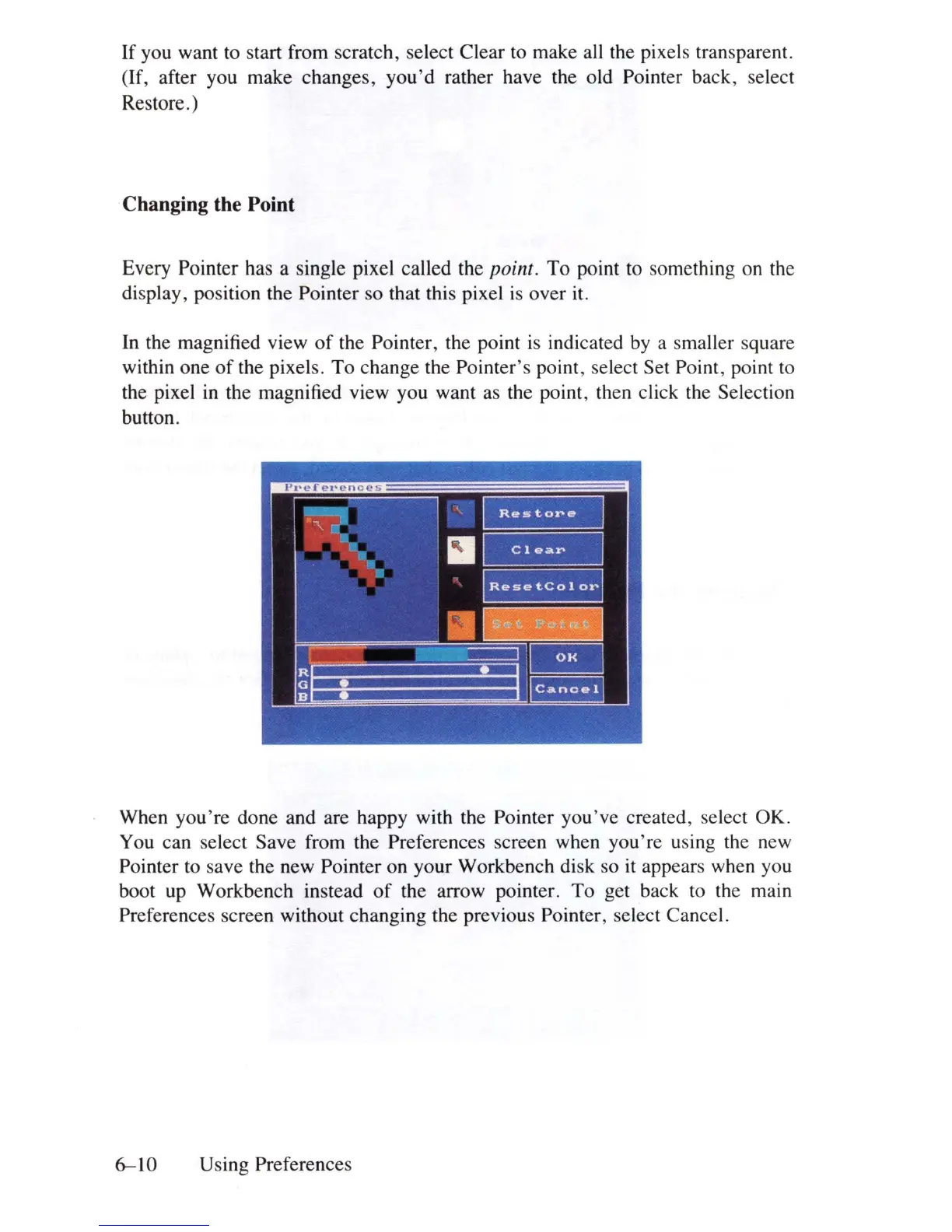 Preferences screen without changing the previous Pointer, select Cancel.