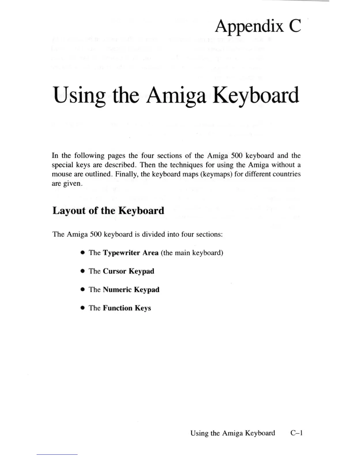 Commodore Amiga 500 - Using the Amiga Keyboard; Layout of the Keyboard
