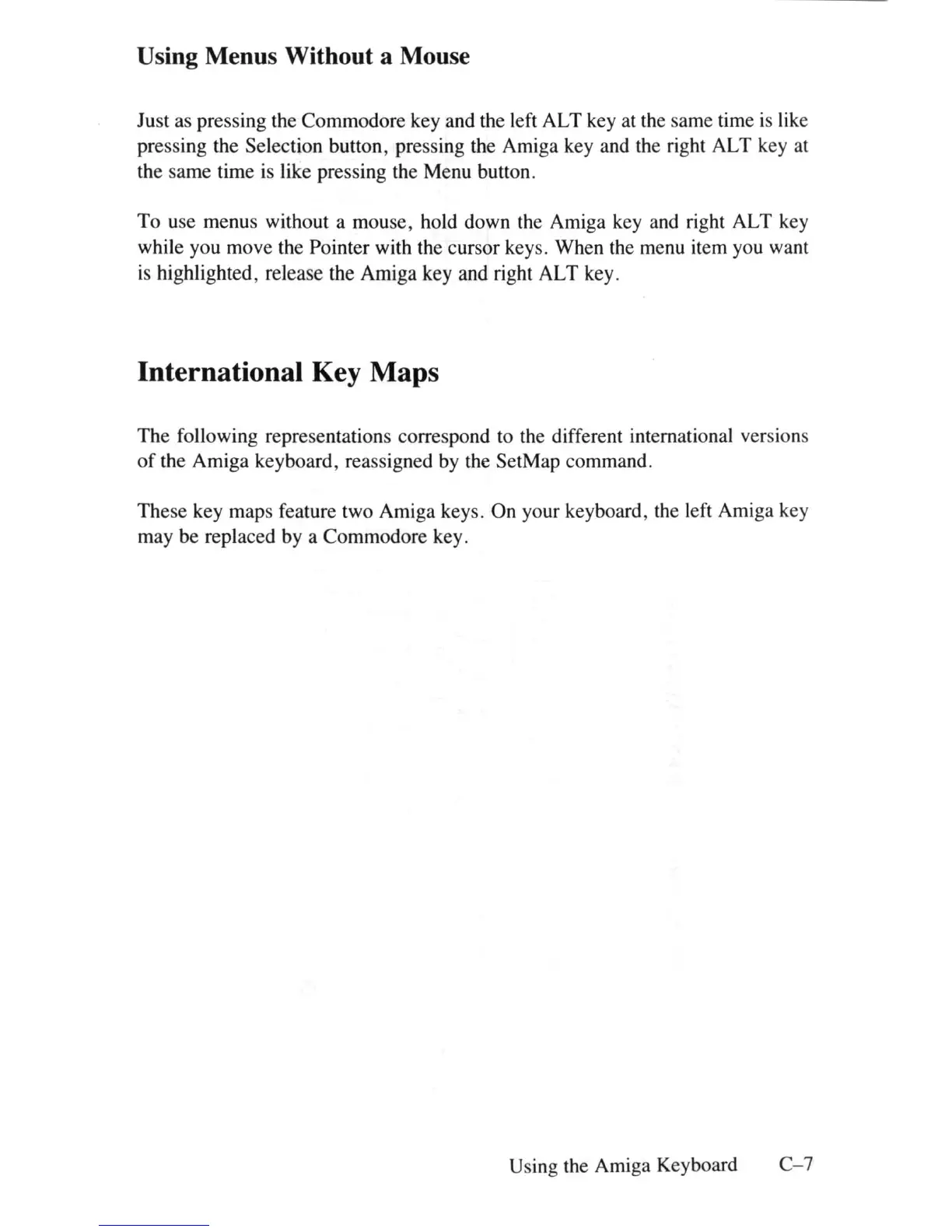 use menus without a mouse, hold down the Amiga key and right AL T key