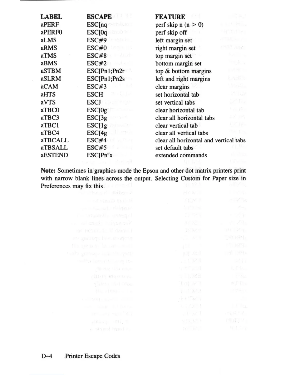 Printer Escape Codes