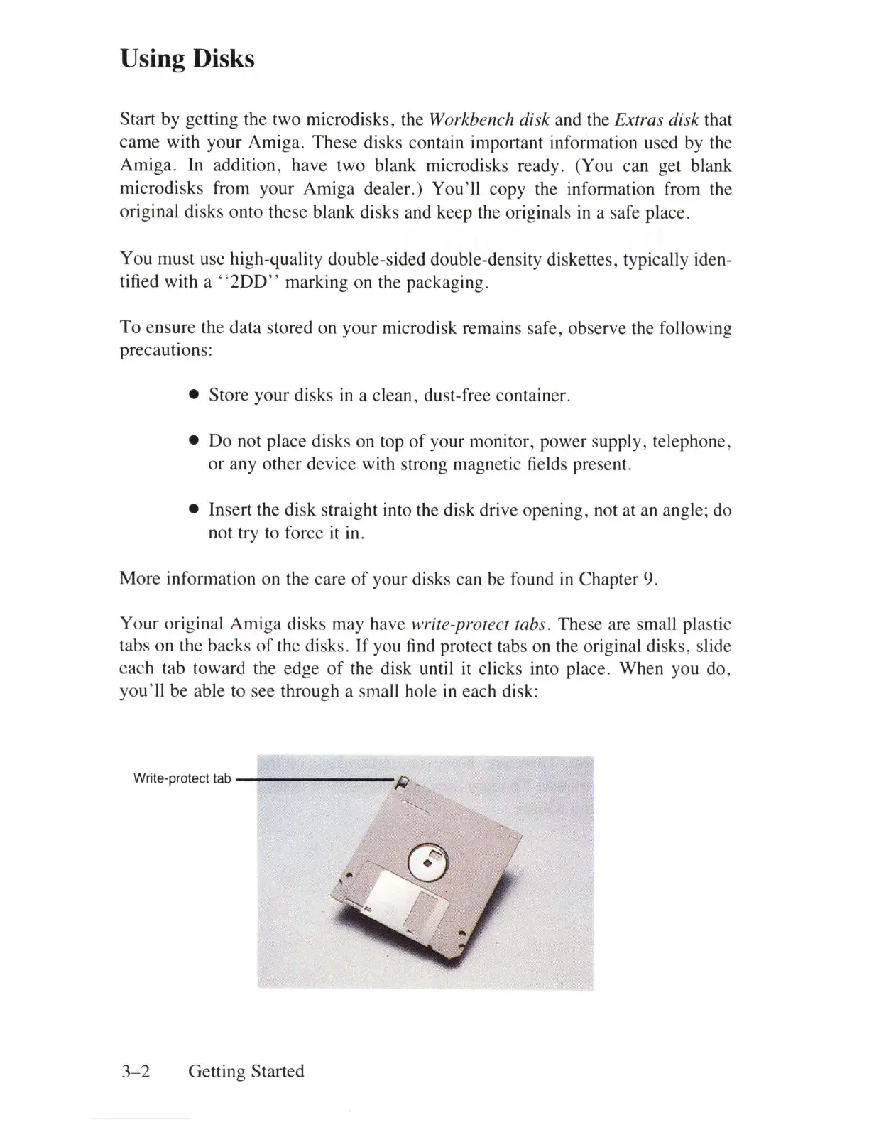 Start by getting the two microdisks, the Workbench disk and the Extras disk that