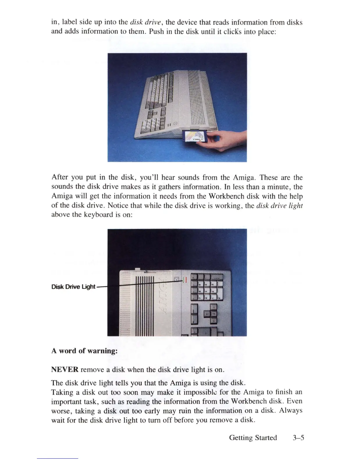 Taking a disk out too soon may make it impossibk for the Amiga to finish an