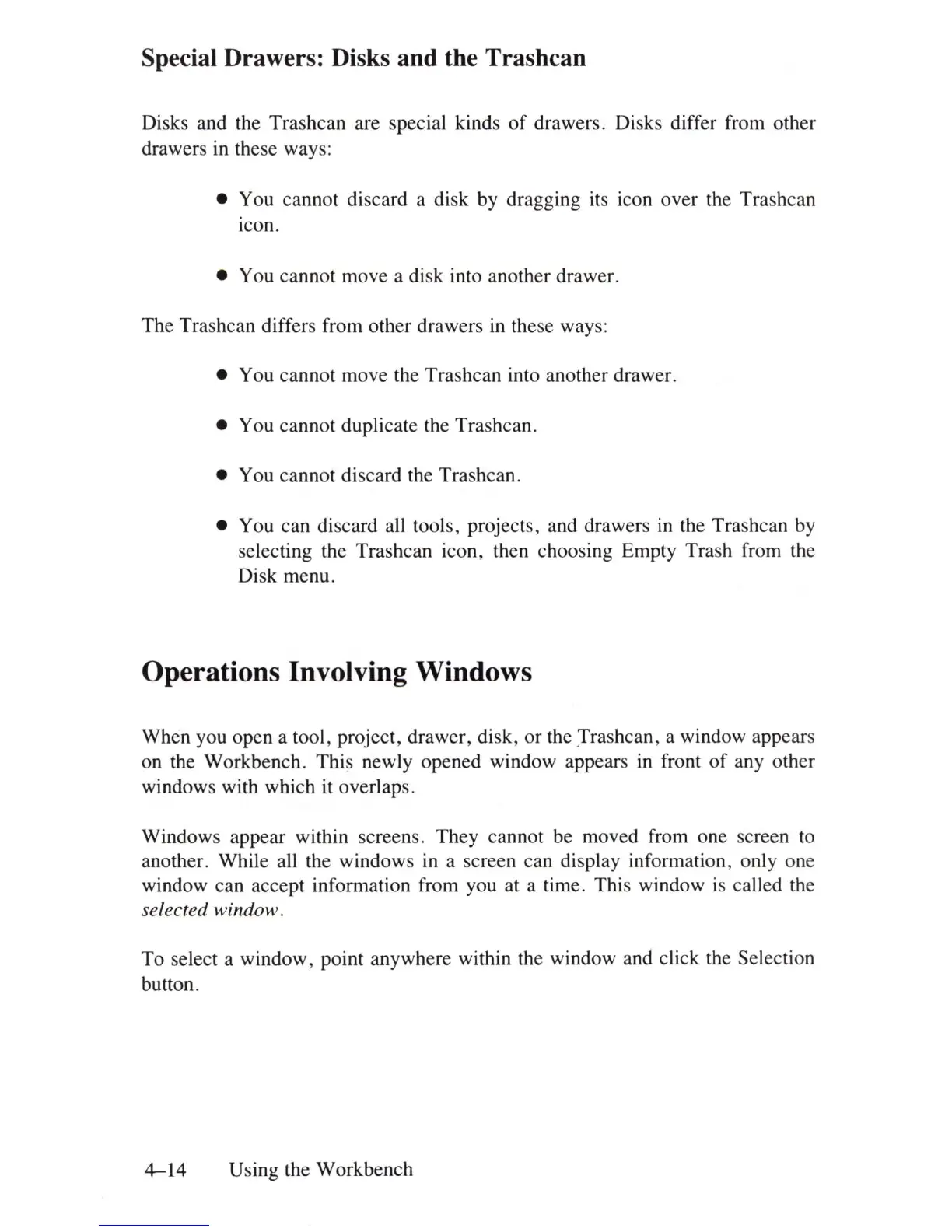 • You cannot discard a disk by dragging its icon over the Trashcan