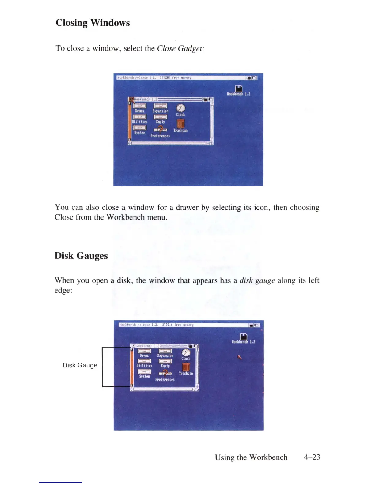 Commodore Amiga 500 - Closing Windows; Disk Gauges
