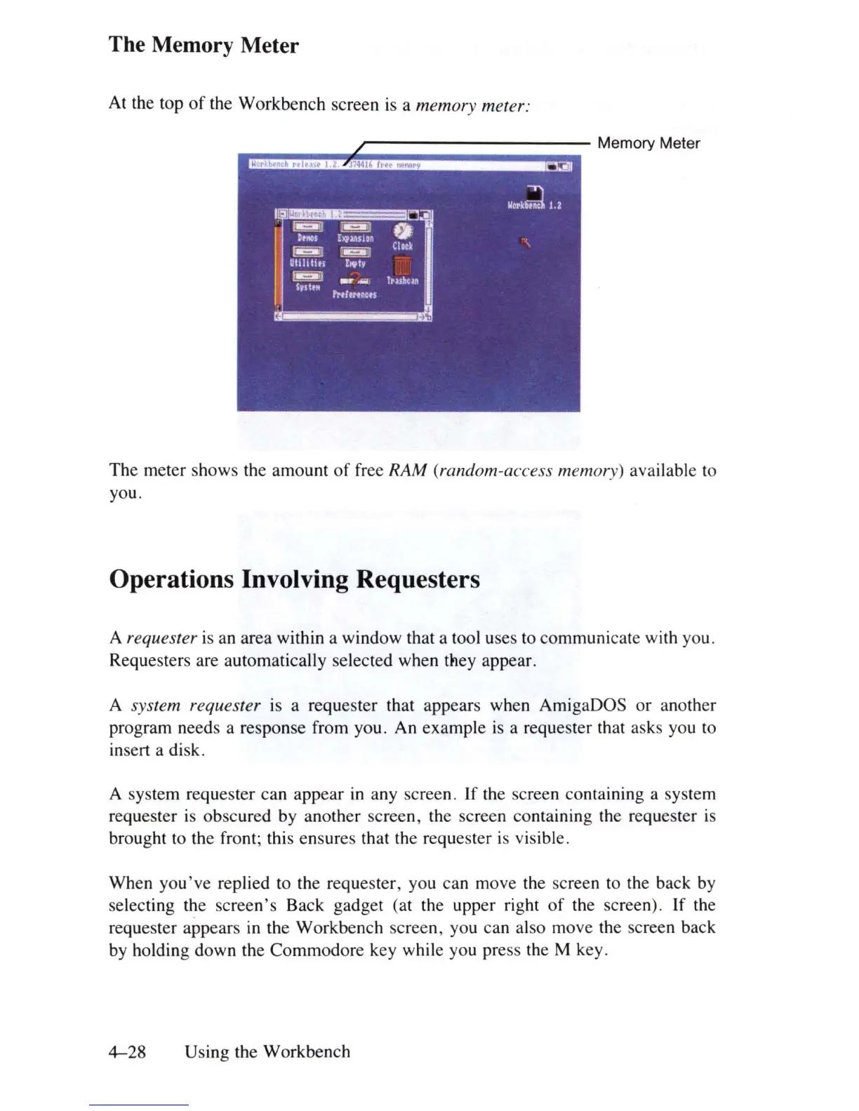 requester appears in the Workbench screen, you can also move the screen back