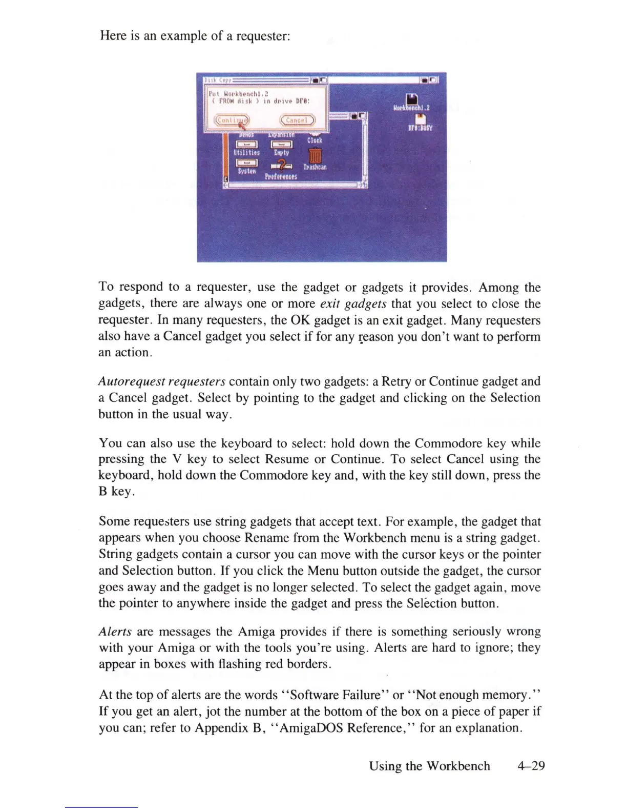 Some requesters use string gadgets that accept text. For example, the gadget that