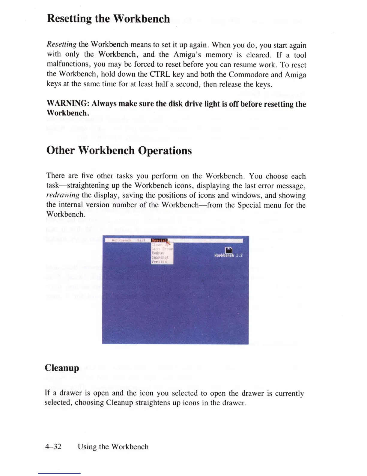 up the Workbench icons, displaying the