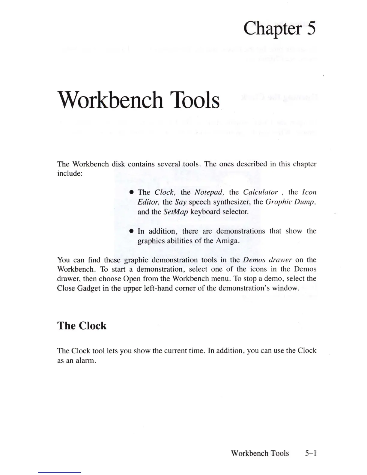 The Workbench disk contains several tools. The ones described